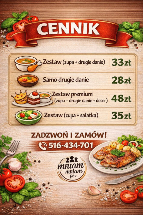 - 28 zł / dzień (samo danie główne)
